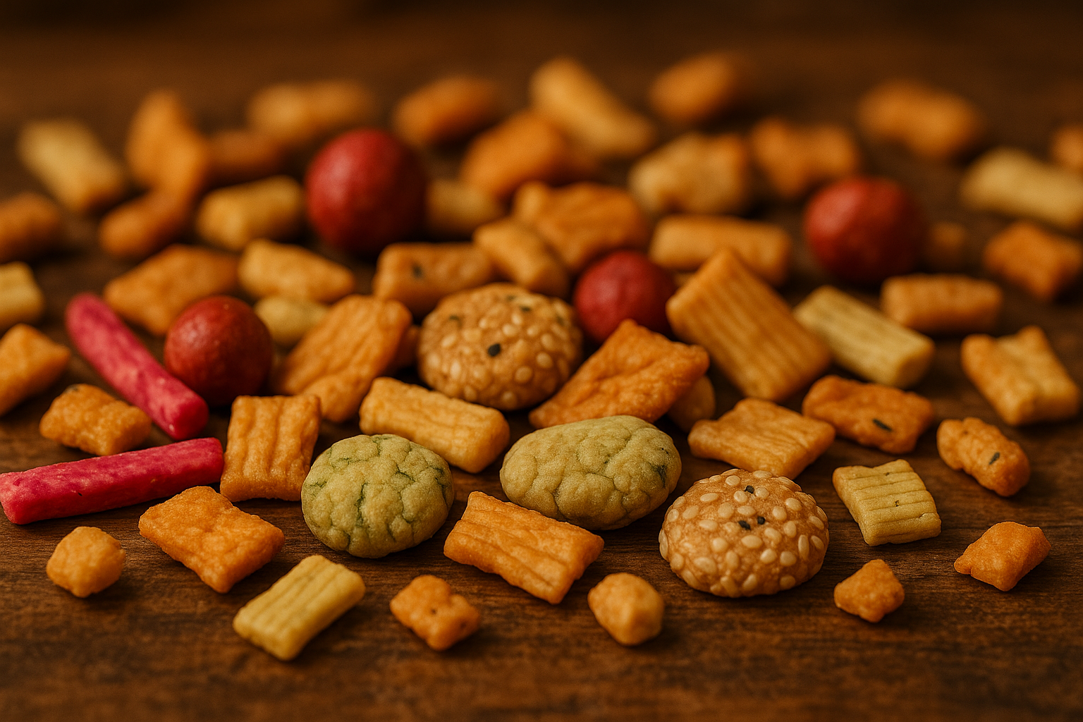 - Charakter: Jeder Bissen bietet eine Kombination aus knackigen Reiscrackern und cremigen Erdnüssen. Der Geschmack ist komplex – salzig, leicht süßlich und dezent scharf, mit einem fernöstlichen Umami-Profil.